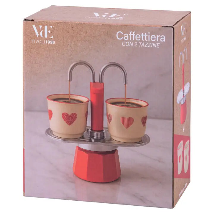 Il Set Caffettiera e 2 Tazze Cuoricini di Villa d'Este Home Tivoli è l'accessorio perfetto per una pausa caffè romantica e funzionale. Questo set unisce il piacere del caffè tradizionale italiano alla comodità di un servizio immediato: il caffè viene erogato direttamente nelle tazzine, mantenute calde grazie all'innovativa piastra d'appoggio in alluminio. Un vero tocco di stile per la tua cucina.